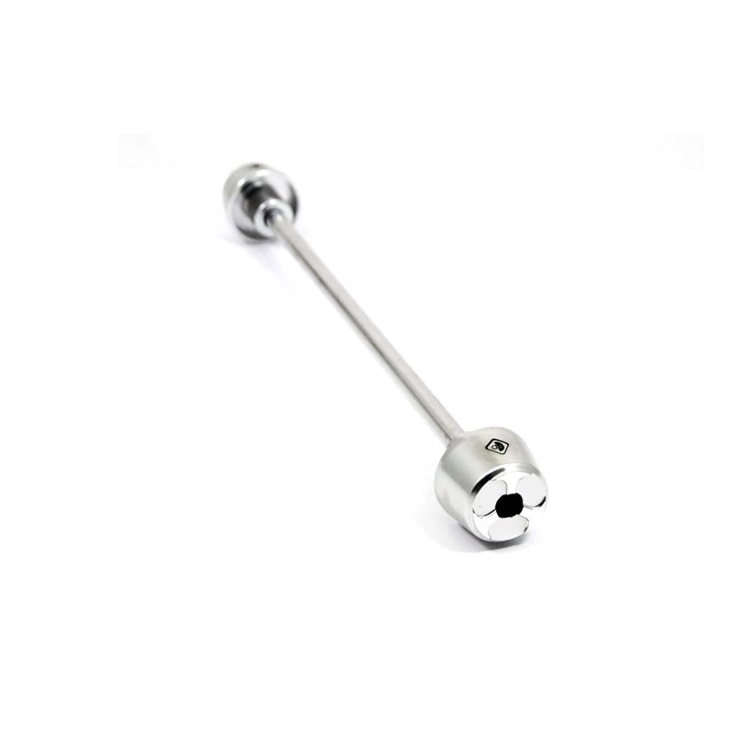 Lavorata dal pieno in ergal 7075 T6, anodizzazione superficiale colorata. Kit pronto al montaggio, si monta sul perno della ruota anteriore, protegge i piedini forcella in caso di caduta.
